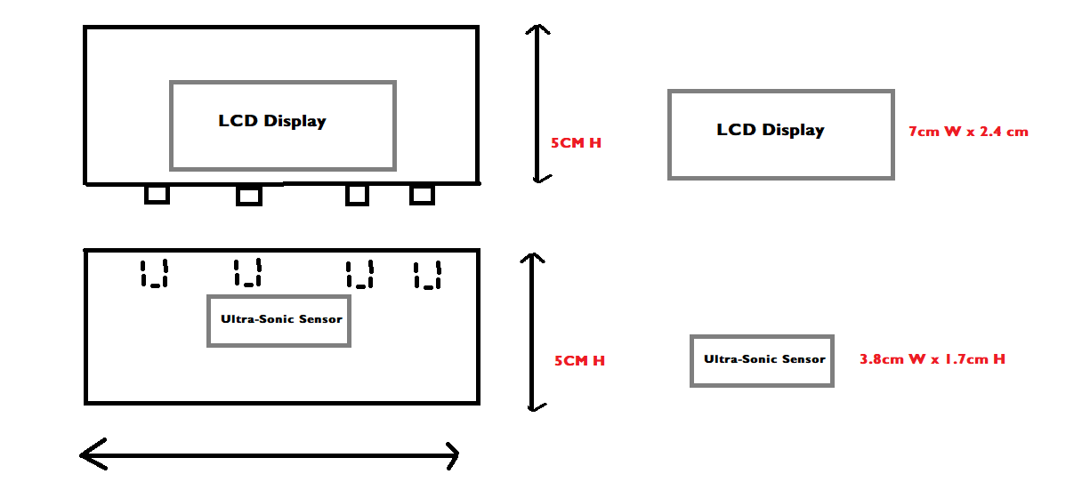 Mock-up drafts / Component-layout plan with measurements during development phase.